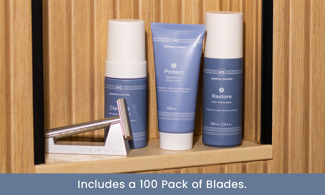 This set makes for the perfect gift. Contains the aerospace quality Henson Razor, matching Henson Stand and two years (or more) of blades, all packaged in a single gift-ready box. It's a gift they'll continue to use, and benefit from for years to come. They won't forget who gave it to them.